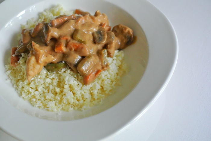 tuesday: cashew-ginger chicken + veggies with cauliflower rice