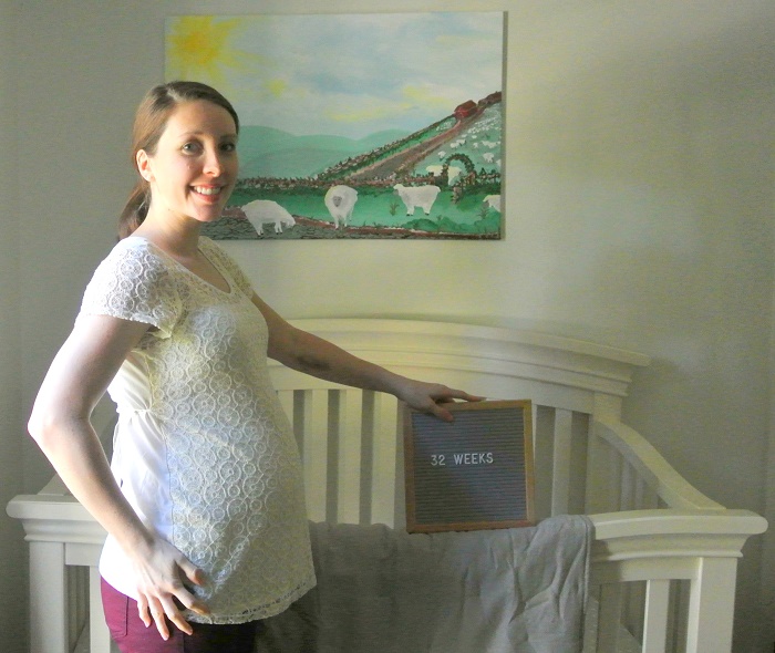 Week 33: I’m making myself feel less anxious by crossing things off my to-do list. Seth and I have decided to bank Baby C’s cord tissue and blood, as we have had need for stem cell treatments in the family within the past year. So I finally enrolled for that process, and the collection kit is on its way. We also sorted through all the “baby” toys in our basement and donated the extras (how did we end up with THREE stacking ring toys?!). Oh, and in the midst of all this, I sent my completed dissertation to my committee, so there’s that.