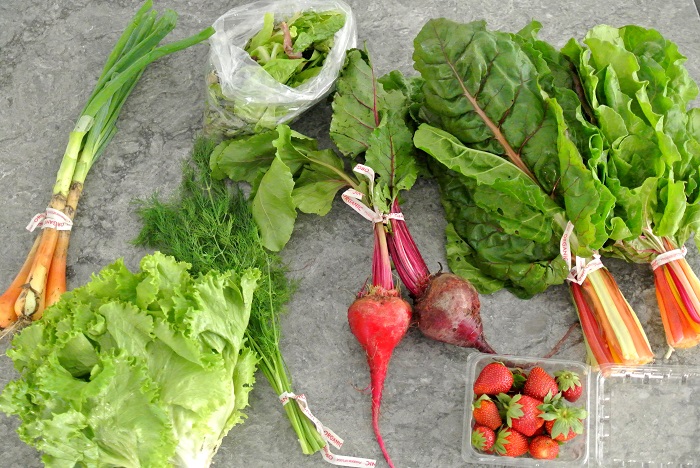 I got a double bundle of chard in this box, courtesy of the “swap station” at our pickup location. Fava beans were included again in this week’s box, and I’ve decided that they’re just not a favorite of mine or any else’s in the family, so I switched out our portion of the fava beans for an extra bundle of chard. I plan on sauteeing the chard and serving as a side to my beloved meatloaf (described here).