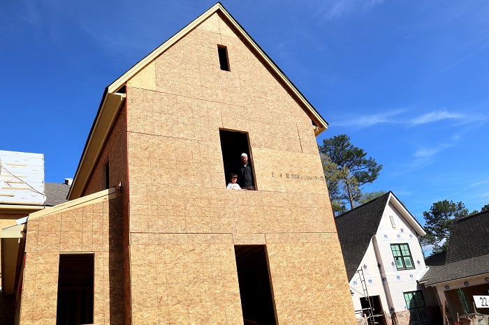 March 22nd, 2020: The roof and dormers are taking shape. This was the first time we let Caleb walk around the construction site so that he could see his room (his will be the front one above the garage).