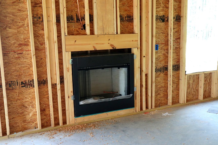 March 8th, 2020: As promised, the framing process has begun. We have a first floor, complete with a front door and a fireplace.