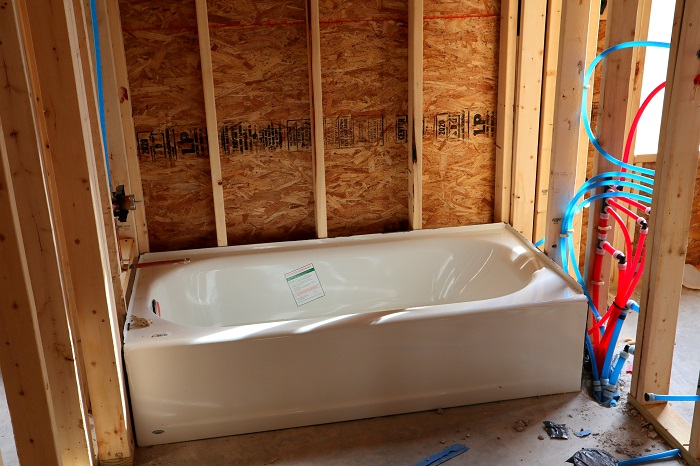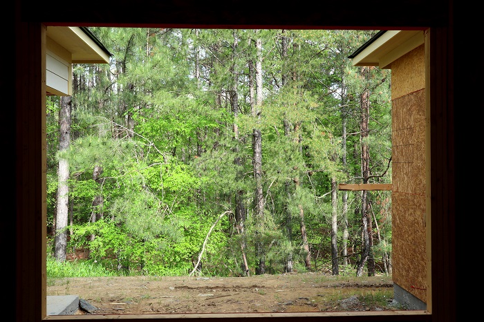 March 29th, 2020: Some spaces in the interior are starting to take shape now. The bathrooms have bathtubs, and the shower in the master bath is all framed. The fireplace in the great room is coming along too. The final picture captures what the view from our breakfast room will be–it’s honestly one of the things I’m most excited about in this house.
