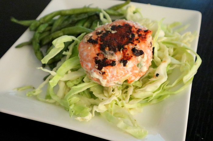 salmon burgers with goddess slaw + green beans (cabbage, green beans)