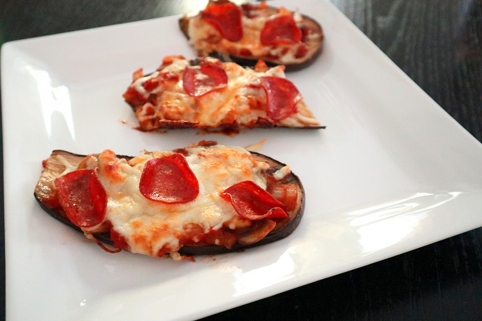 We were pleasantly surprised by the eggplant pizzas. Typically, eggplant is an vegetable that just doesn’t behave like all the others–you can’t just throw it in the oven with some olive oil and end up with a tasty side dish. But this recipe ended up great.