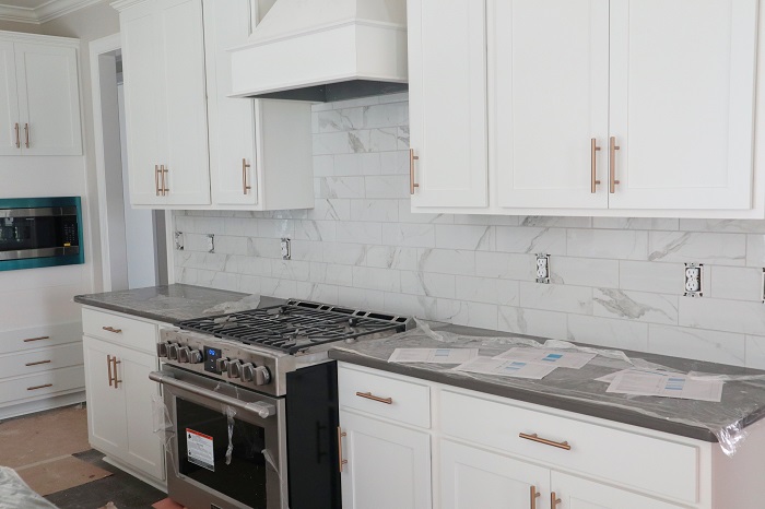 The further we get with this home-building process, the more I realize that it’s a lot like pregnancy. The most recent parallel? The final month seems to drag on for an eternity! We have officially sold our old home and are biding our time at my parents’ house while the new one is completed. There were a few weeks where it seemed like there was no progress at all at the house, which is why I haven’t posted in a while–I had no pictures to share! We are now less than two weeks from closing, so there has been a frenzy of new activity.